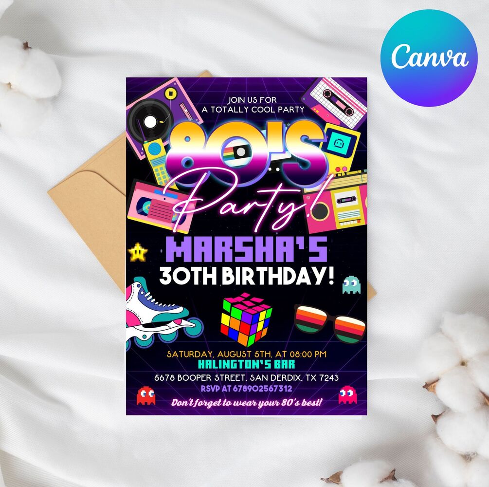 80s Birthday Party invitation, 80s Birthday invitation, 80s invitation, 80s Invites, 80s Party invitation, Retro Birthday invitation