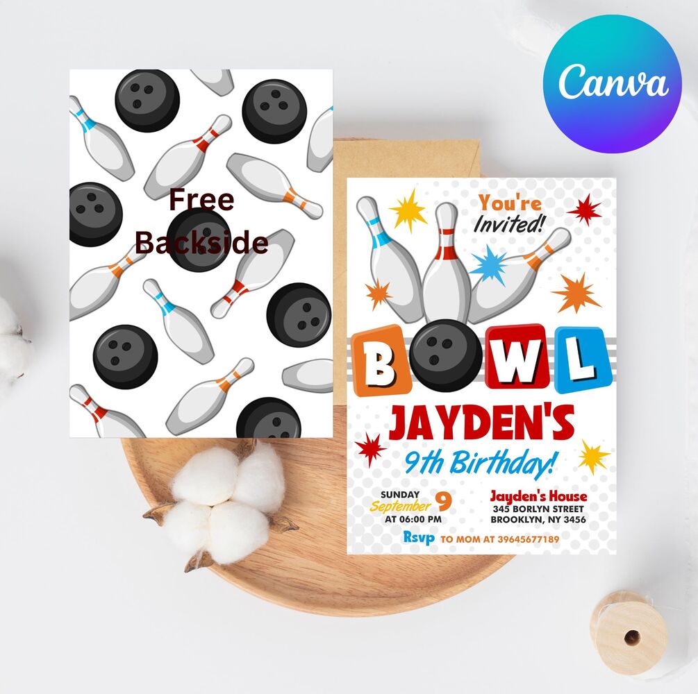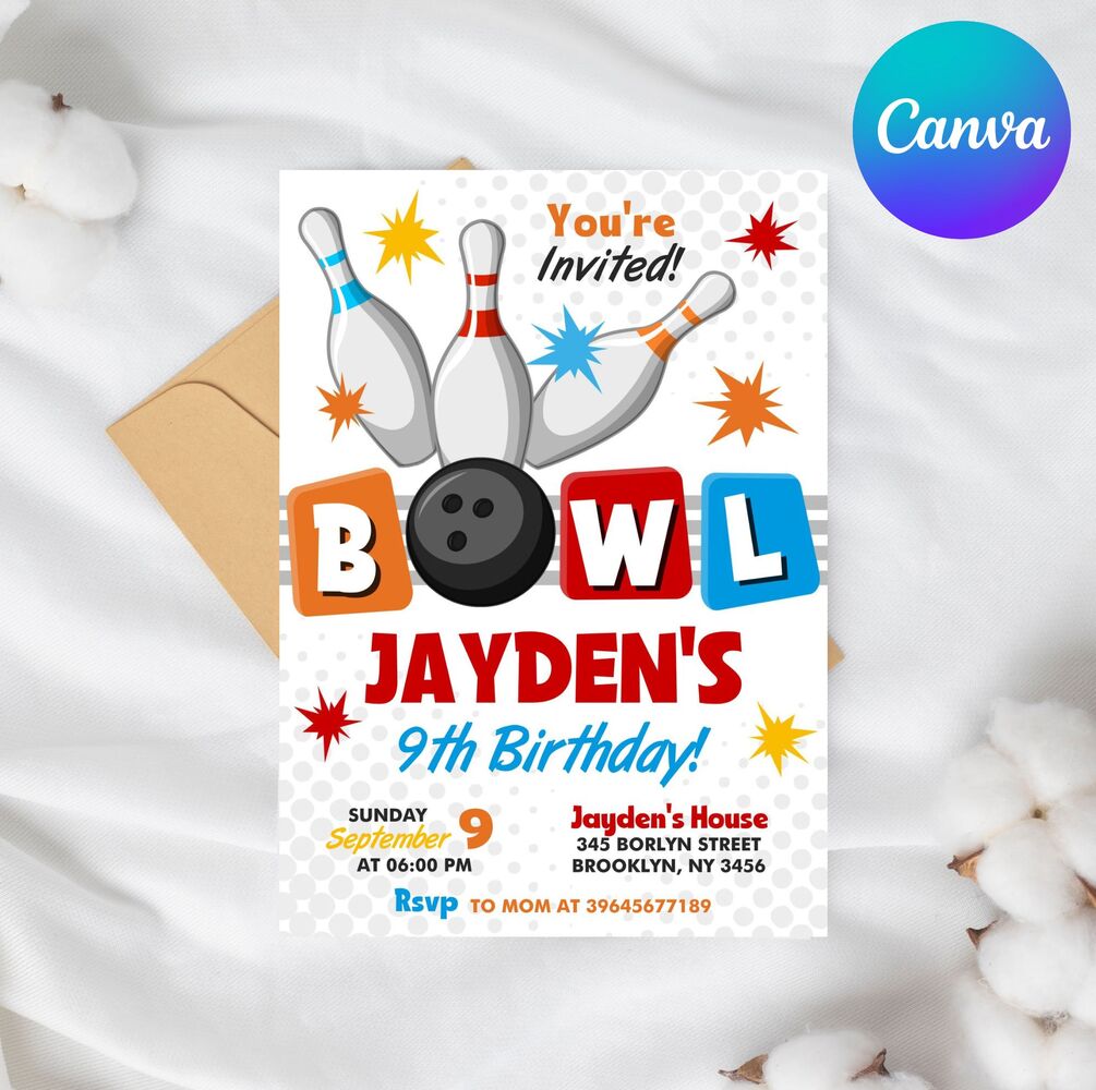 Bowling Birthday Invitation, Bowling Invitation, Bowling Invites, Bowling Party invitation, Sport Birthday Invitation, Editable Invitation