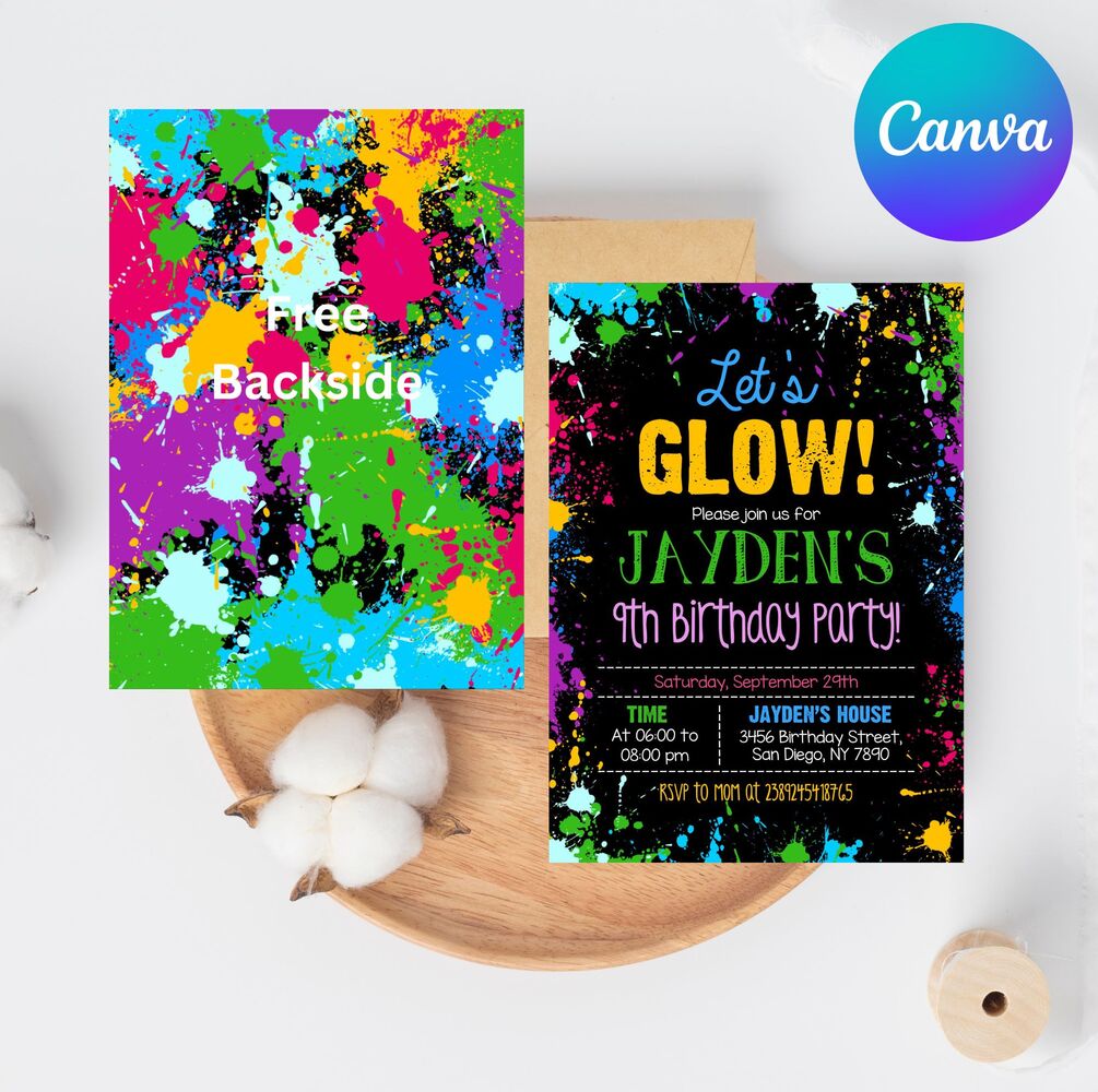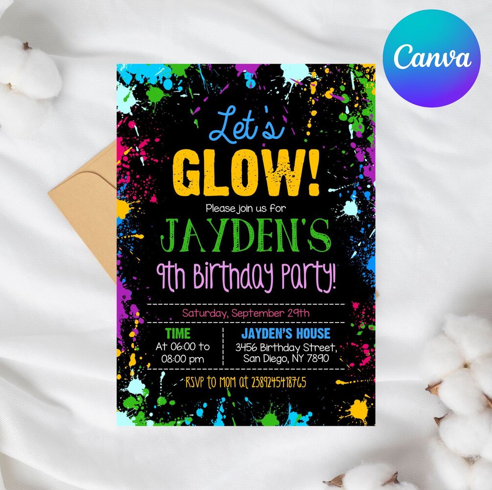 Glow Birthday Invitation, Glow Invitation, Glow Invites, Glow party Invitation, Glow Party, Editable invitation